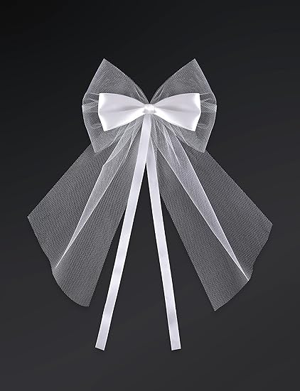 Party Décoration Mariage Noeud Tulle Et Ruban Satin Blanc Décoration Voiture Mariage Lot De 2 Noeud En Satin Et Tulles Blanc Pour Votre Voiture
