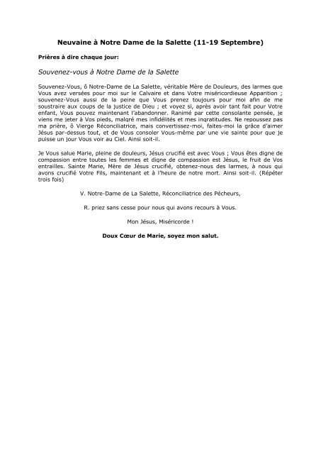 Neuvaine à Notre Dame De La Salette 11 19 Septembre Souvenez